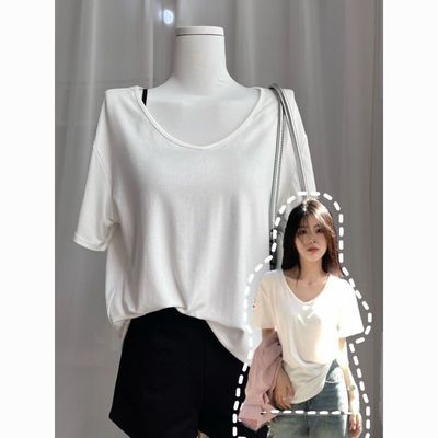 基础款纯白色V领正肩短袖t恤女夏季宽松百搭休闲慵懒风松弛感上衣